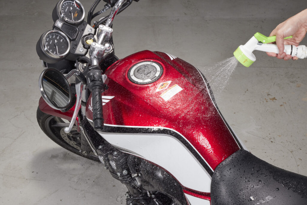 Before using the product, wash off the dirt and mud from bike that may cause scratches with water.