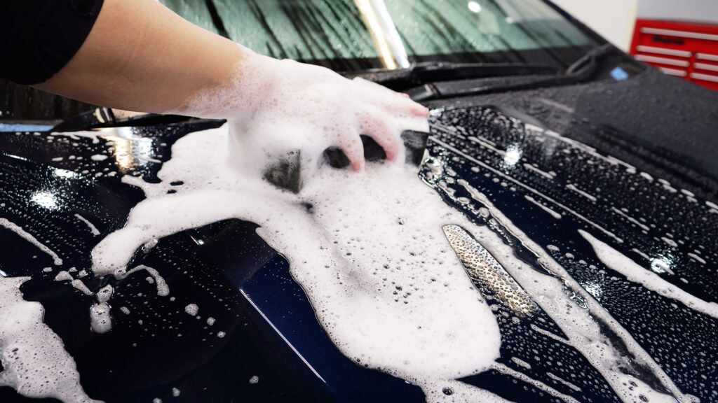 - Apply the shampoo to a car wash sponge and gently scrub the body of the car.