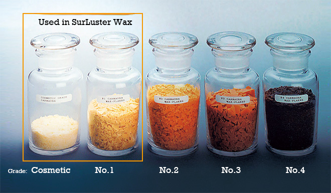 Most premium SurLuster solid waxes feature natural carnauba wax from the Brazilian carnauba palm tree’s young leaves (top grades: No.1/No.2, Flor de Fina/cosmetic grade). Hard, transparent film for incredible depth and gloss. Used historically for antiques/furniture shine; safe for food/cosmetics too. SurLuster blends high-grade carnauba for UV protection, water resistance, and that signature “wet-look” Japanese depth.